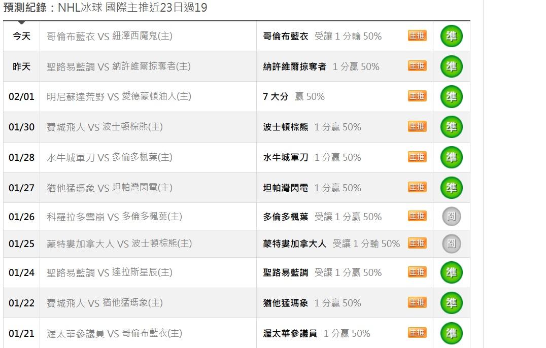 >> 冰球分享1場(國際 主推近23日過19)