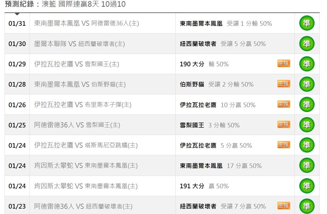 澳洲職籃 >> 澳籃分享一場(國際連贏8天 10過10)