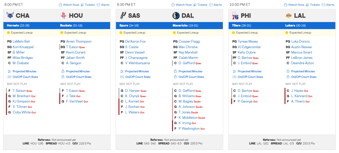NBA >> NBA 2/6 ✅ 分析推薦 $交易截止$