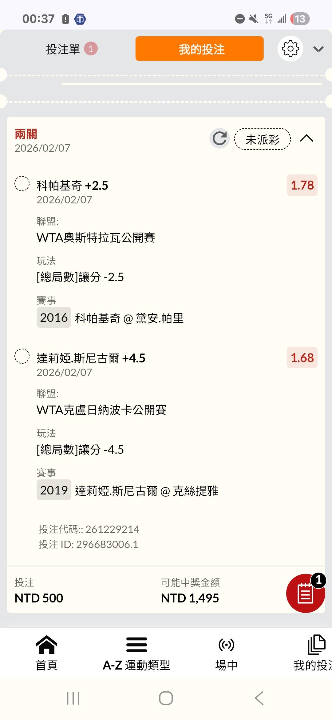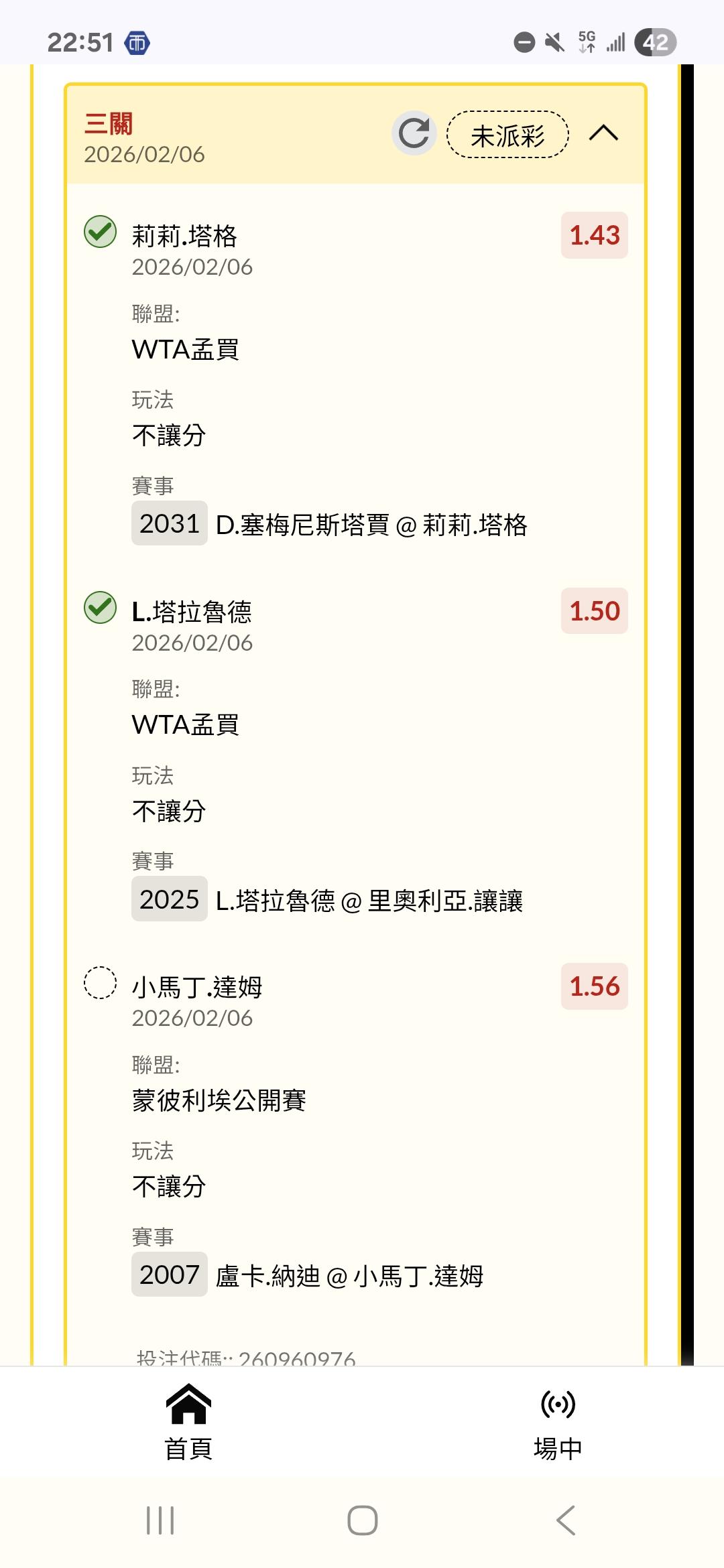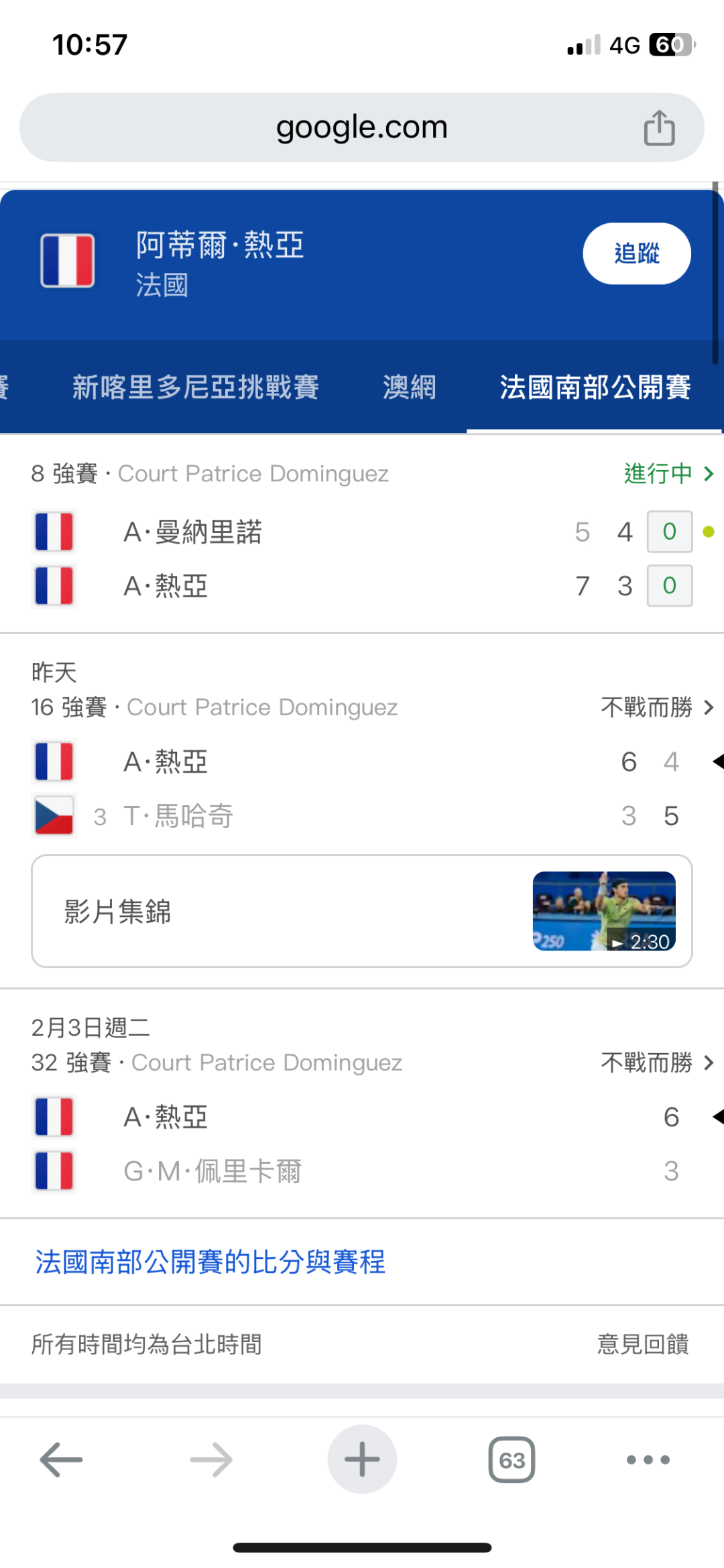 網球 >> 2/6〈網球〉ATP、WTA-各種公開賽
