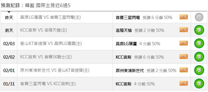 >> 2/6 韓籃推薦 韓籃 國際 主推近6過5 近6天 10過9