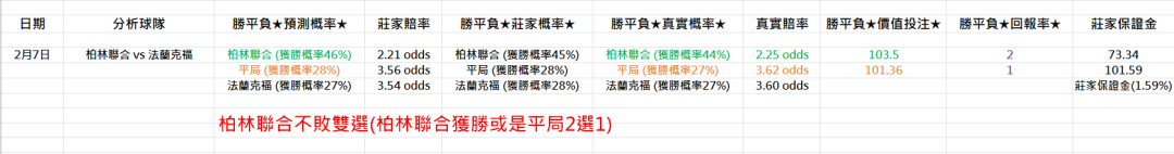 足球 >> (02/07) 運彩:不讓分單場★德甲★ (數學足球模型、科學精算分析、輸贏自負、沒有絕對)