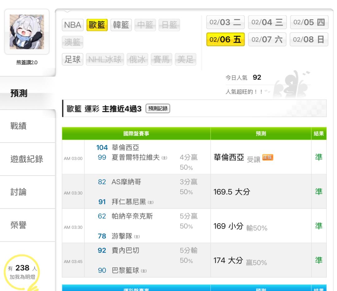 歐洲職籃 >> 昨天四過四,今天可能全黑