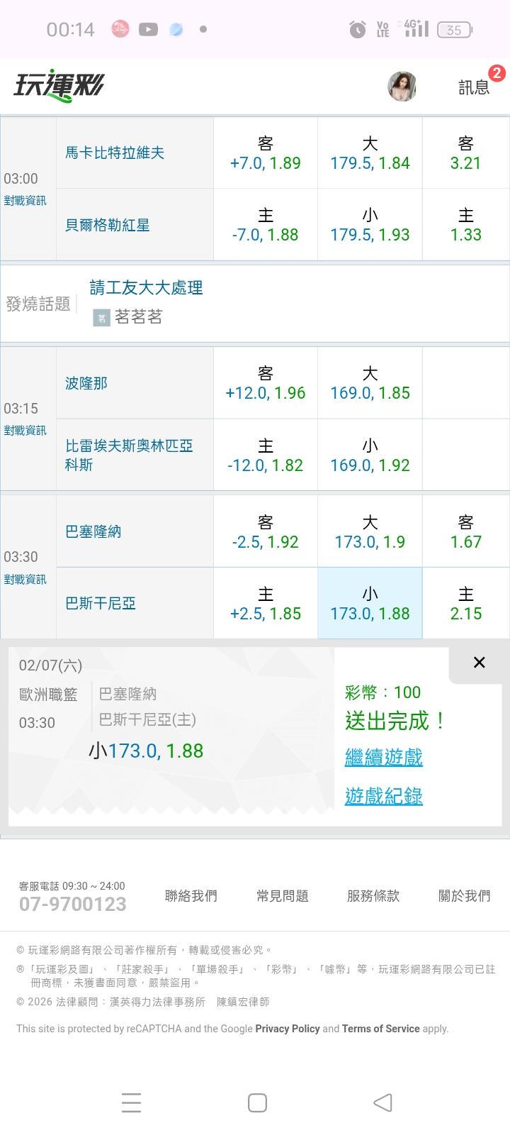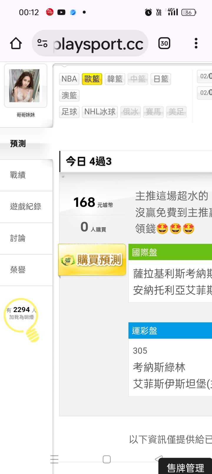 歐洲職籃 >> 歐籃恭喜用卷觀看的那位朋友,信哥妹信心主推贏錢啦,感謝(綠林vs艾菲)🤩