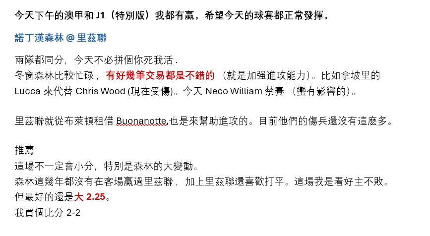 足球 >> 【MOFU足球預測】英超 - 諾丁漢森林 @ 里茲聯
