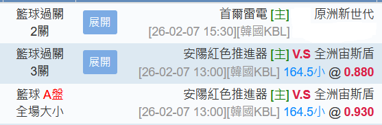韓國職籃 >> 2/07【昨天釘孤支過關】初盤分享+13:00小分推薦!!