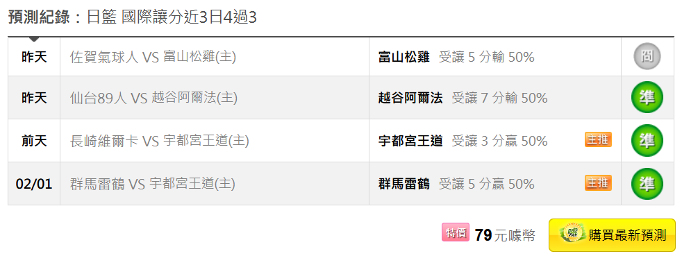 日本職籃 >> 2/08【國際讓分 近3日4過3】13:05受讓推薦!!