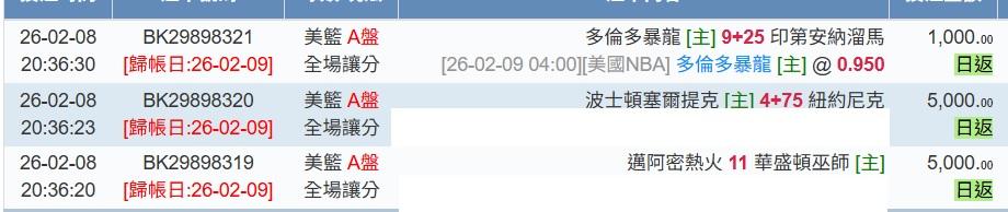 >> 2/9日NBA1場參考(國際 連贏2天 8過7)
