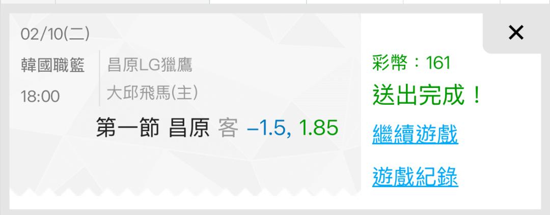 韓國職籃 >> 2/10 主推連過3天,昨日雙主推2過2(繼續特價