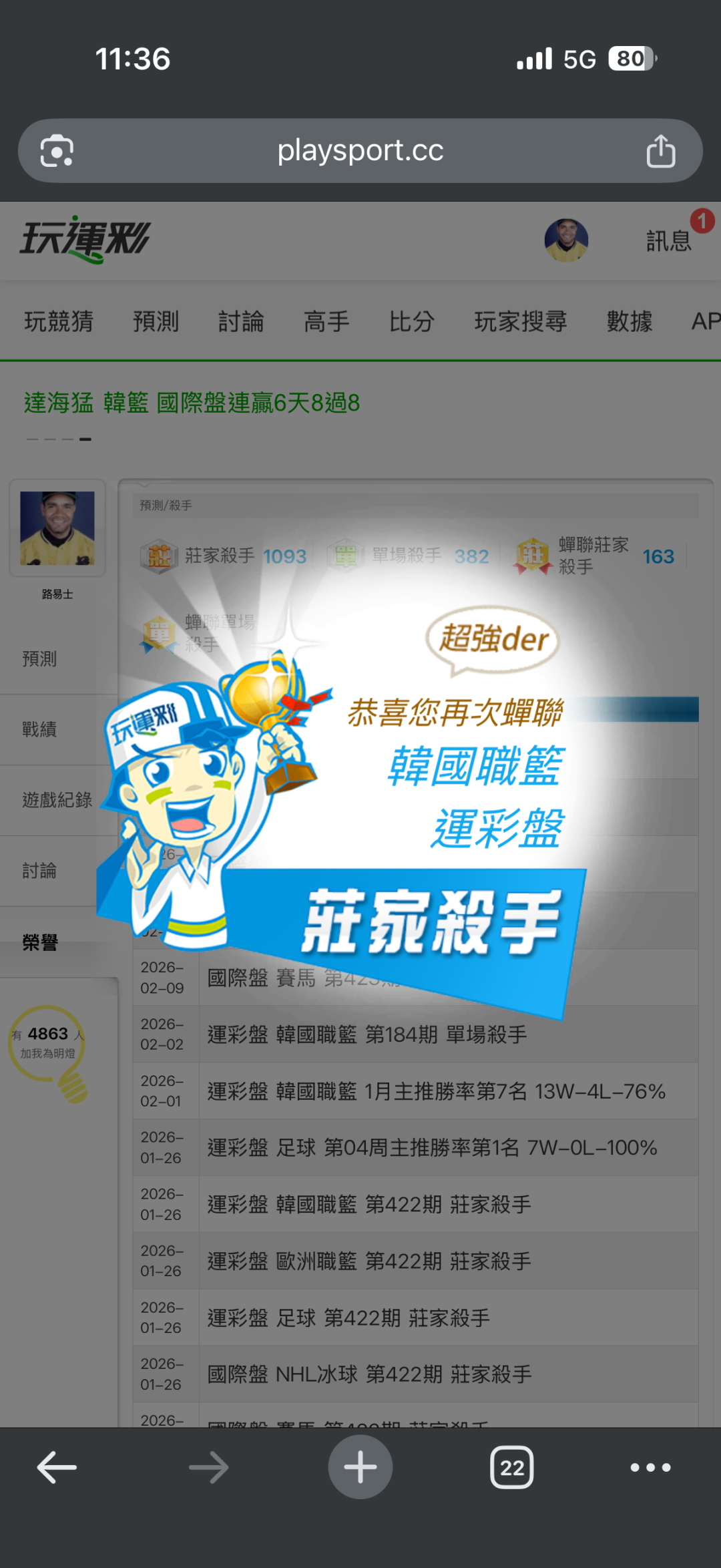 韓國職籃 >> 今天分享一注主隊得分大小~ 本月運彩主推第一名!