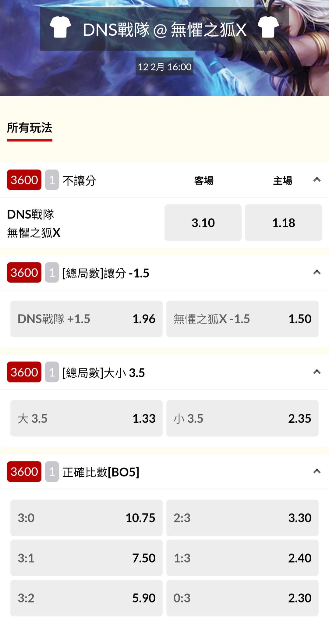 電競 >> 02/12 DNS戰隊 V.S 無懼之狐X