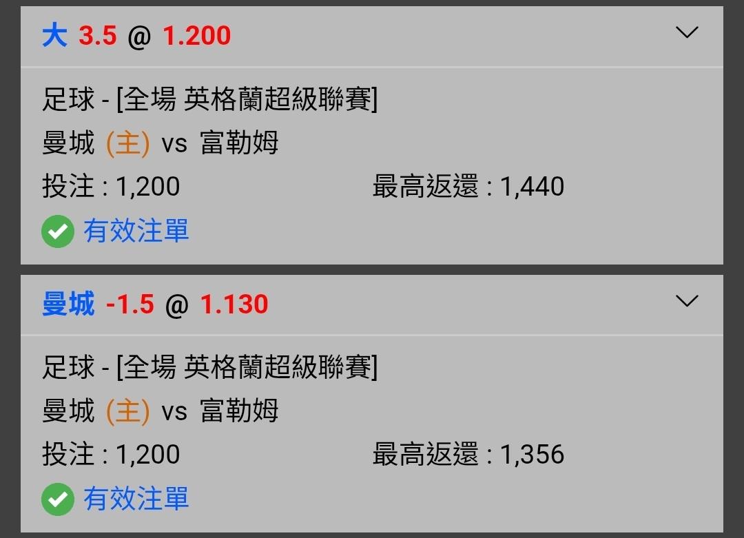 >> 03:30 英超 曼城場雙高賠