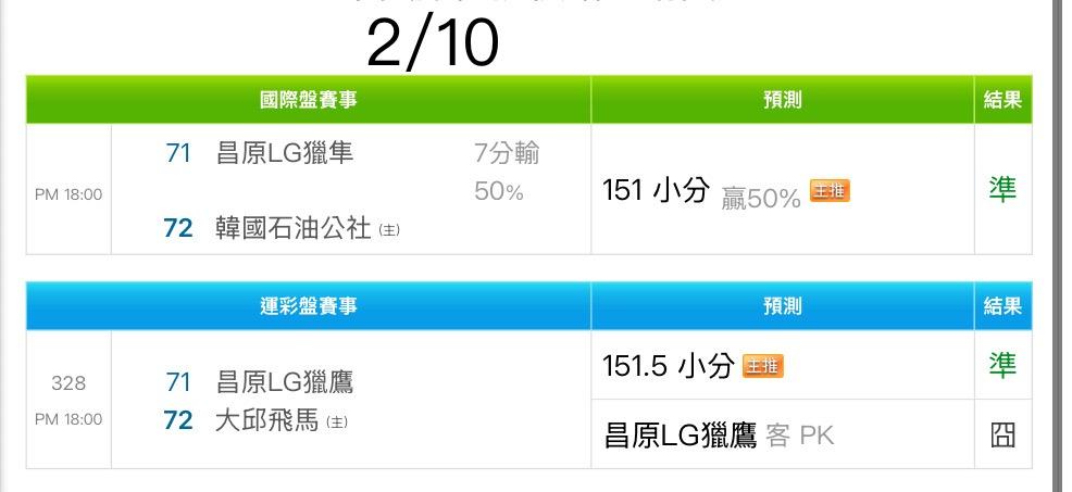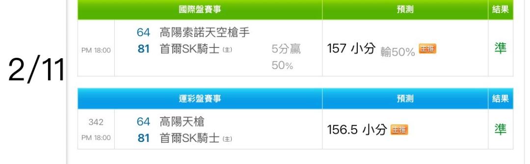>> 2/12 運彩主推連過5天💰💰