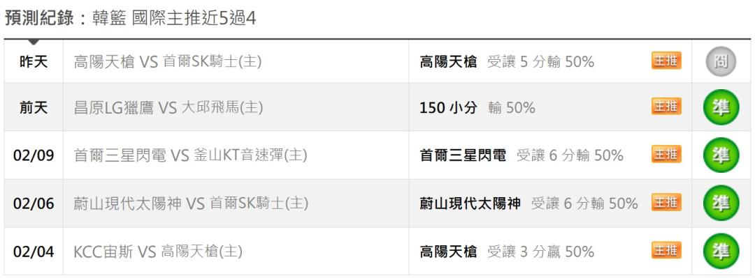 韓國職籃 >> [國際主推 近期 5過4]-[台彩單場 蔚山VS三星]-[高信心場]-有信心 拚全過