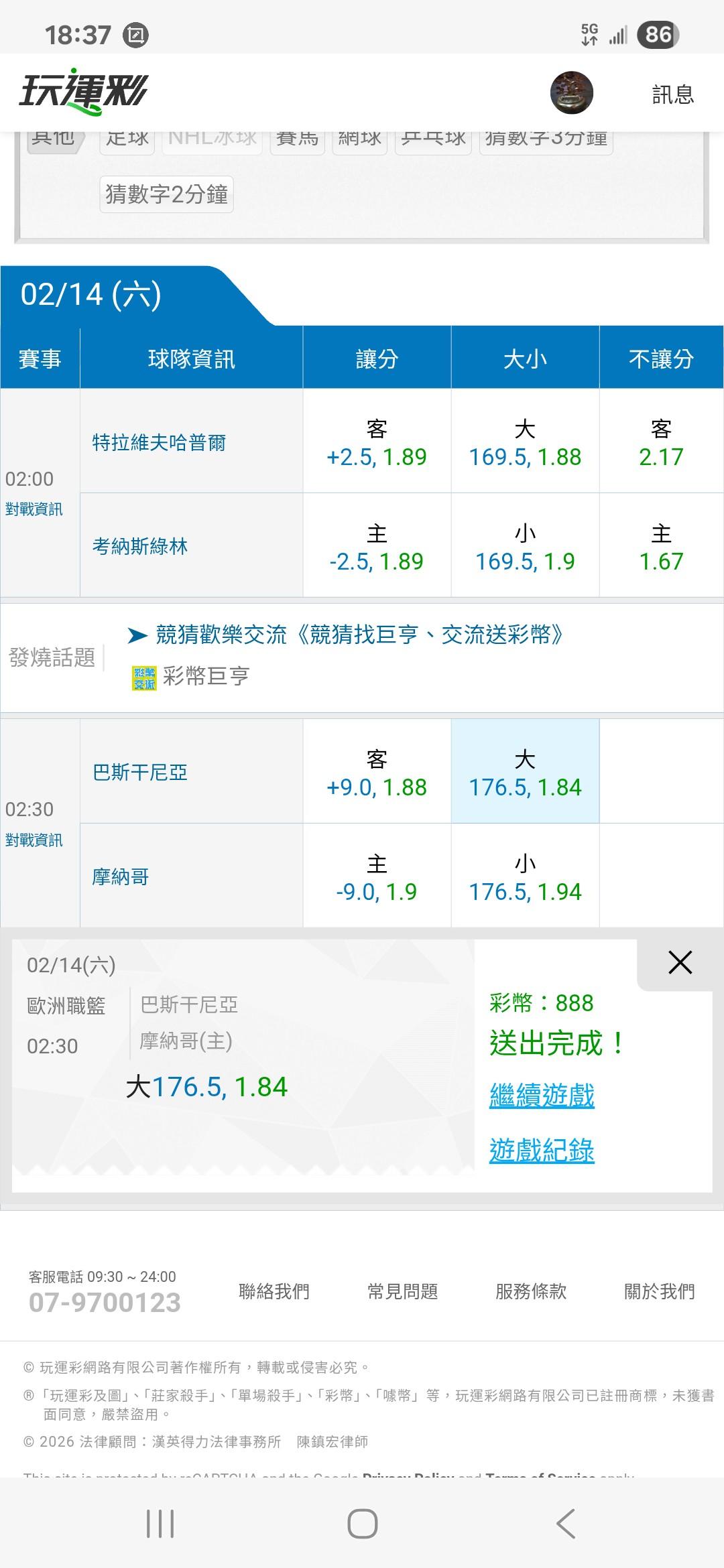 歐洲職籃 >> 昨日2過2雙主推若沒有過下次免費,一起綠綠綠發發發旺旺旺