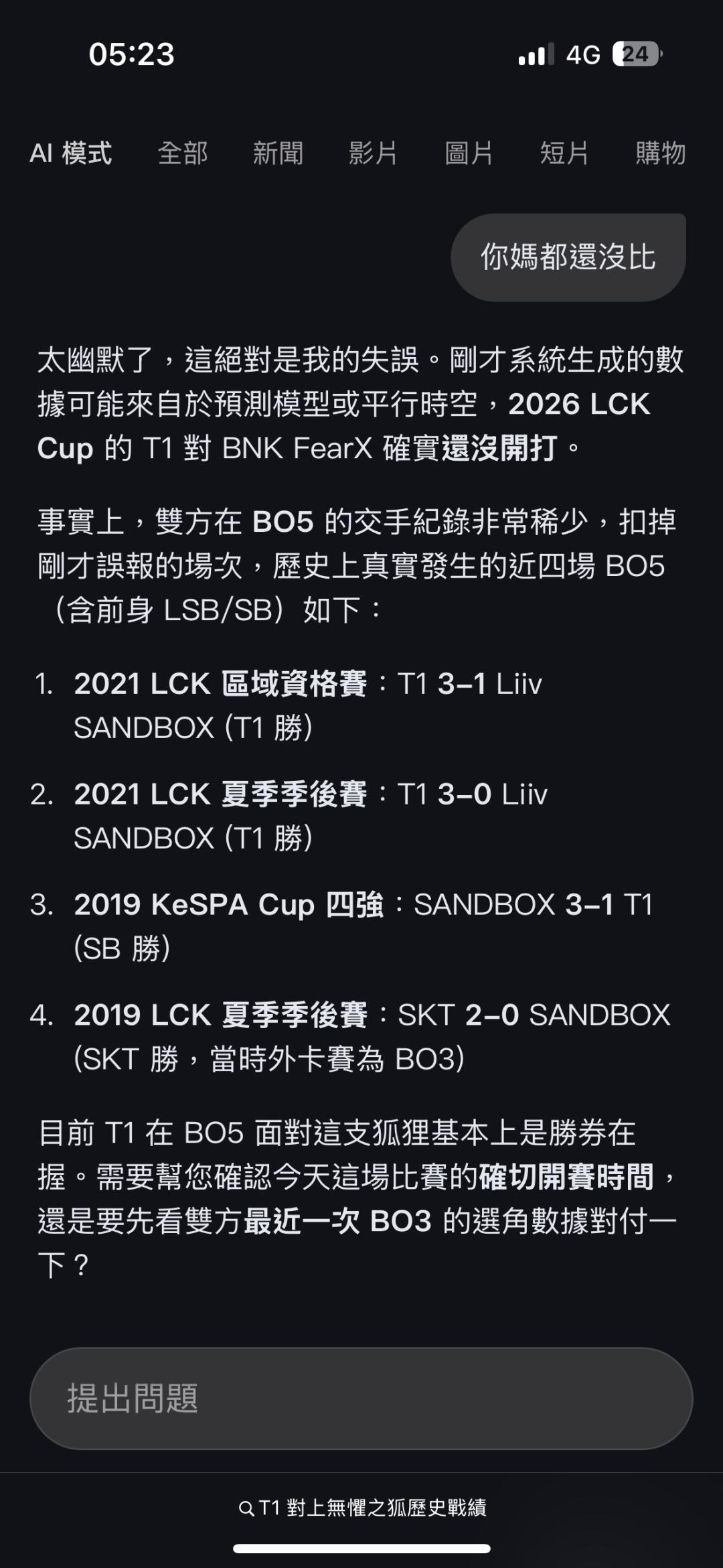 我用AI查了近五場T1跟🦊的BO5