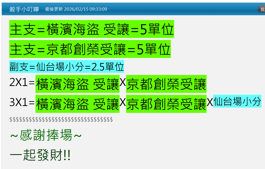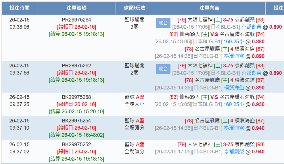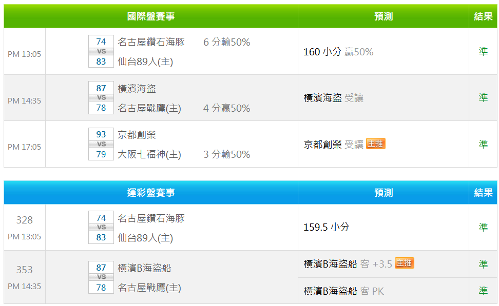 日本職籃 >> 2/15【雙主推全過】【小叮嚀2X1過關】13:05星期日小分版路推薦!!