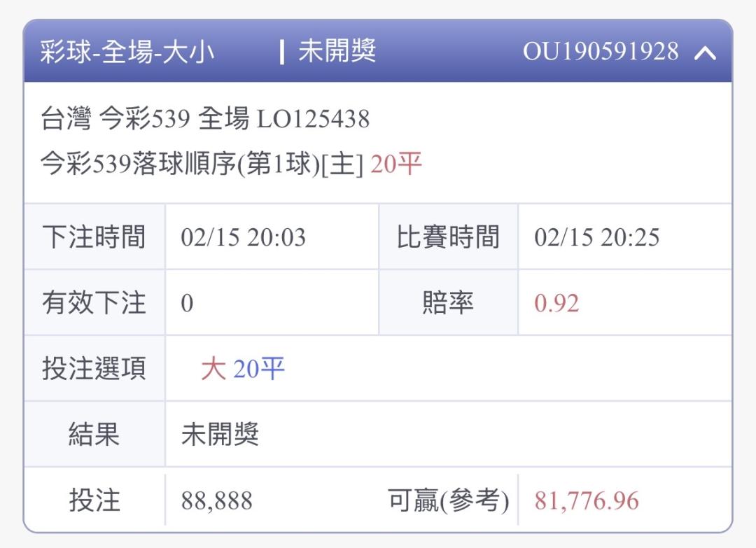 彩球 >> 539「100小」六合「六七顆小+特別號大」