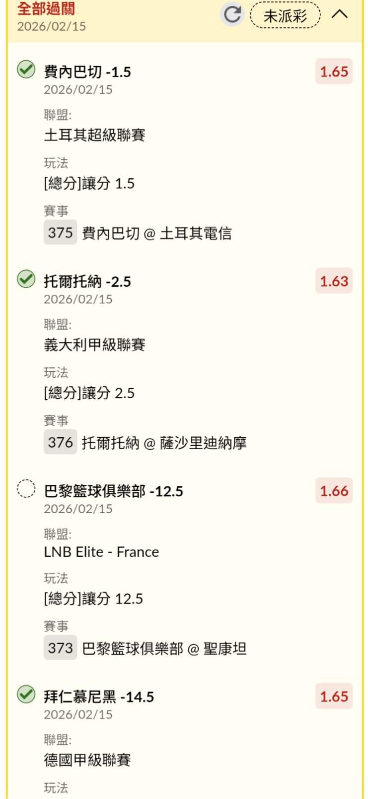 剛剛在看巴黎,上半場大大超爛!還好下半場回神,重點是還好我沒買-14.5,-13.5,避險我買-12.5 |