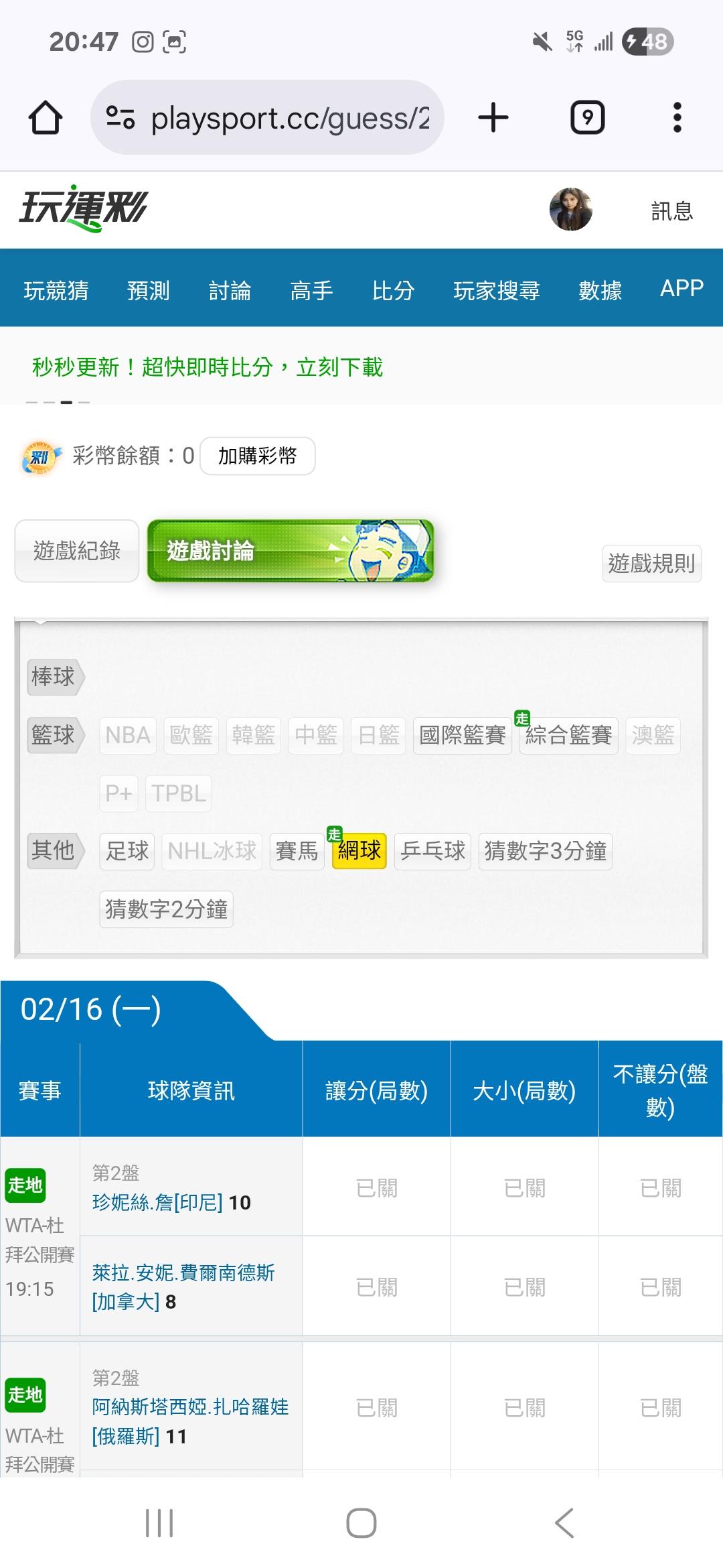 網球 >> 2/16〈網球〉ATP、WTA-各種公開賽