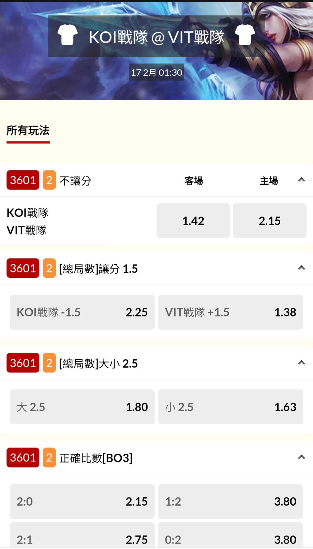 電競 >> 02/16『FNC戰隊 @ NaVi戰隊』『KOI戰隊 @ VIT戰隊』