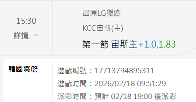 韓國職籃 >> 2/18 韓籃推薦【國際主推信心度高】【小叮嚀有注數推薦】【內附台灣運彩單場】【今日特價】