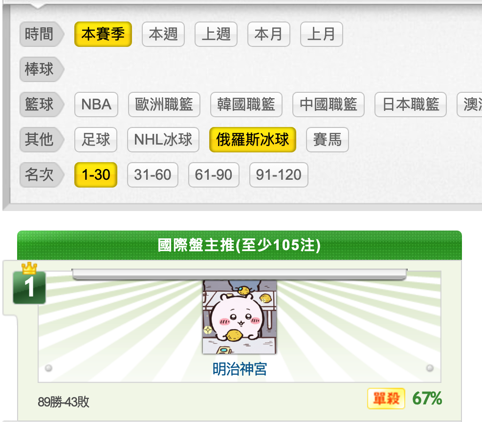 俄羅斯冰球 >> 🏒邪惡的氣息,本賽季主推暫居第一,昨日二過二