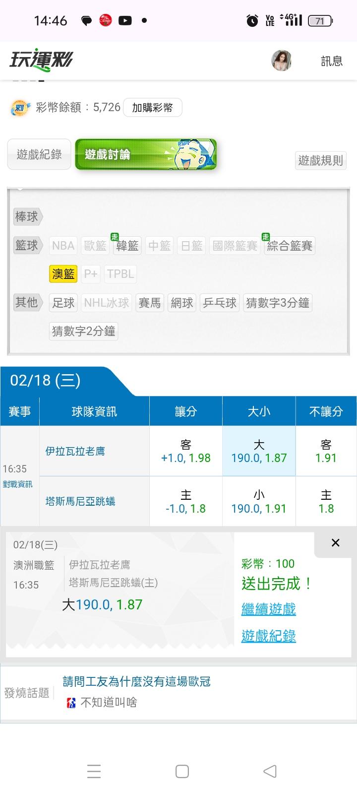 澳洲職籃 >> 澳籃4:30主推重點很不錯的場次,沒贏下次免費,一起來殺🤩