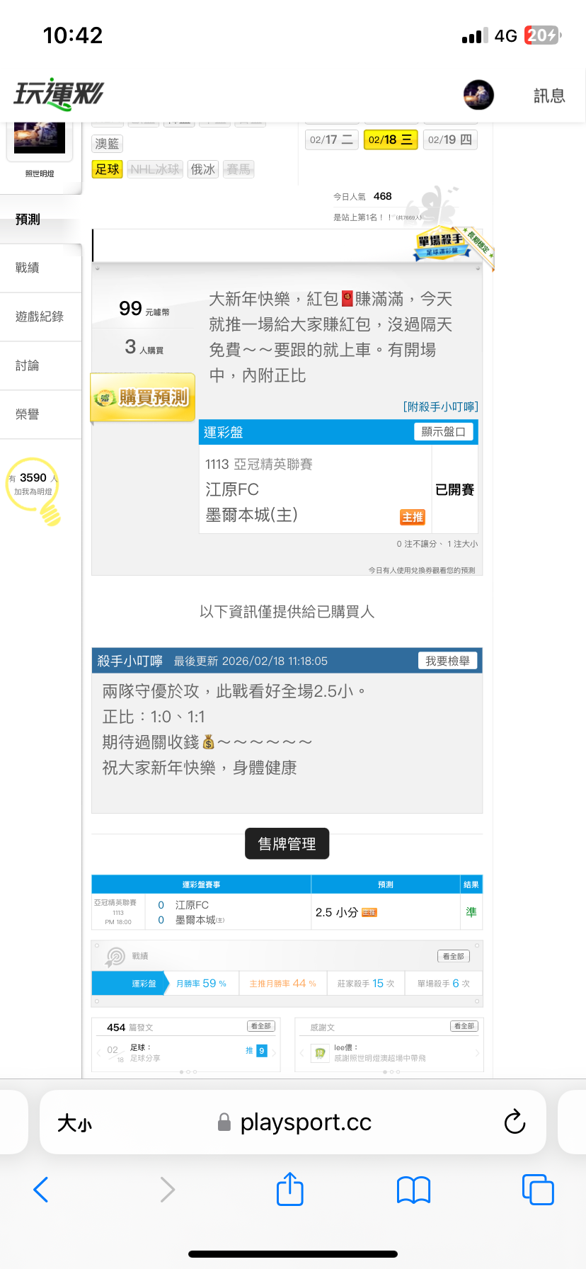 足球 >> 足球分享(半夜信心紅包場,3場沒全過隔天免費)