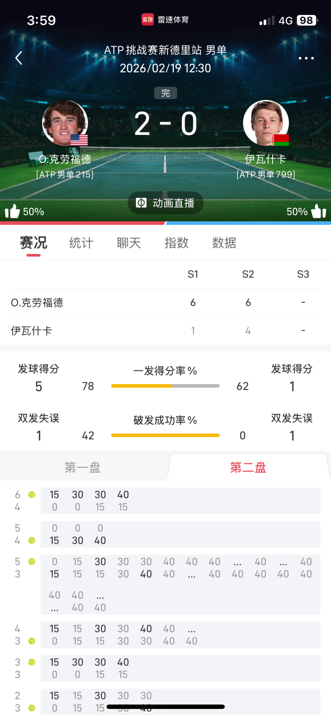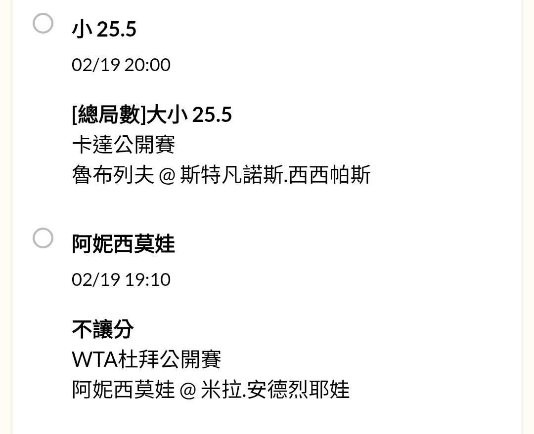 網球 >> 2/19〈網球〉ATP、WTA-各種公開賽