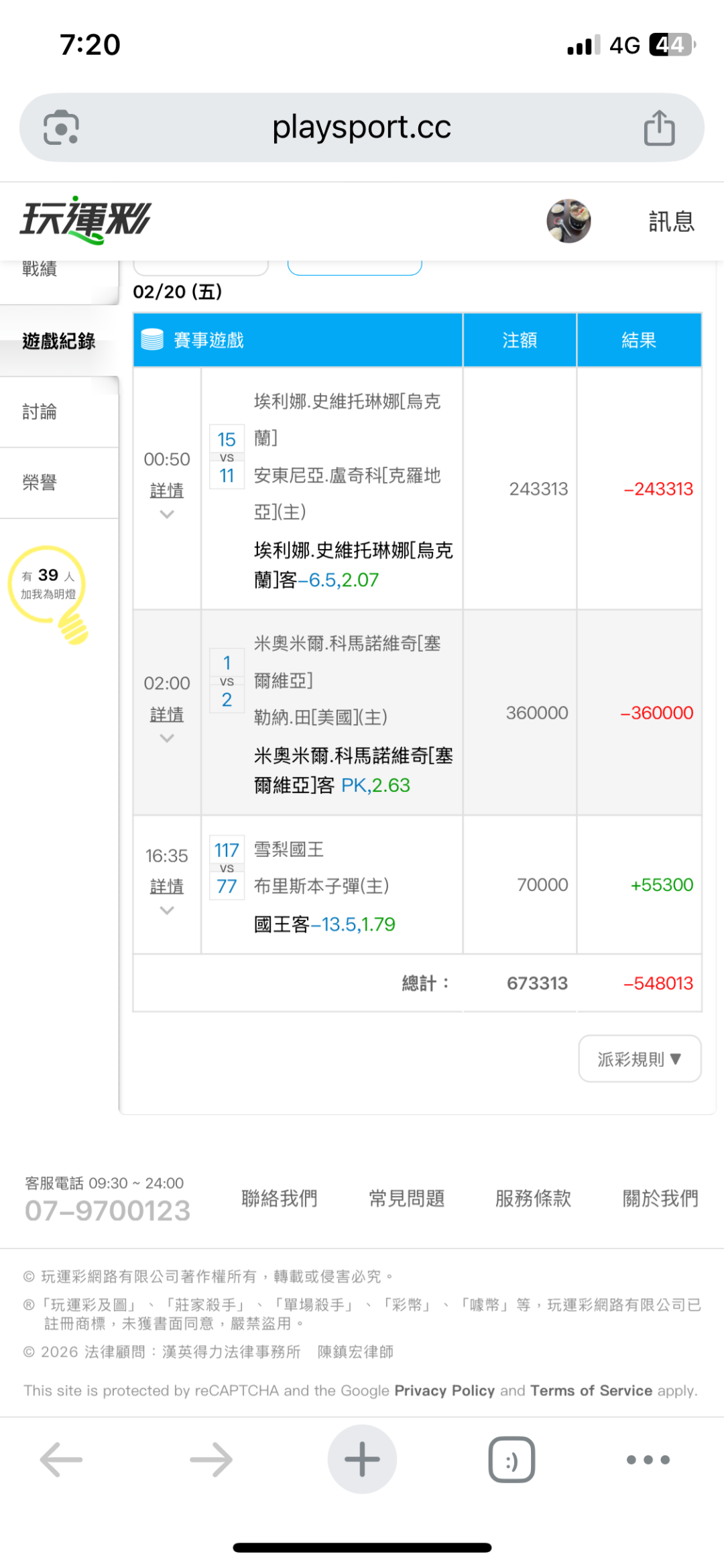 網球 >> 2/20〈網球〉ATP、WTA-各種公開賽