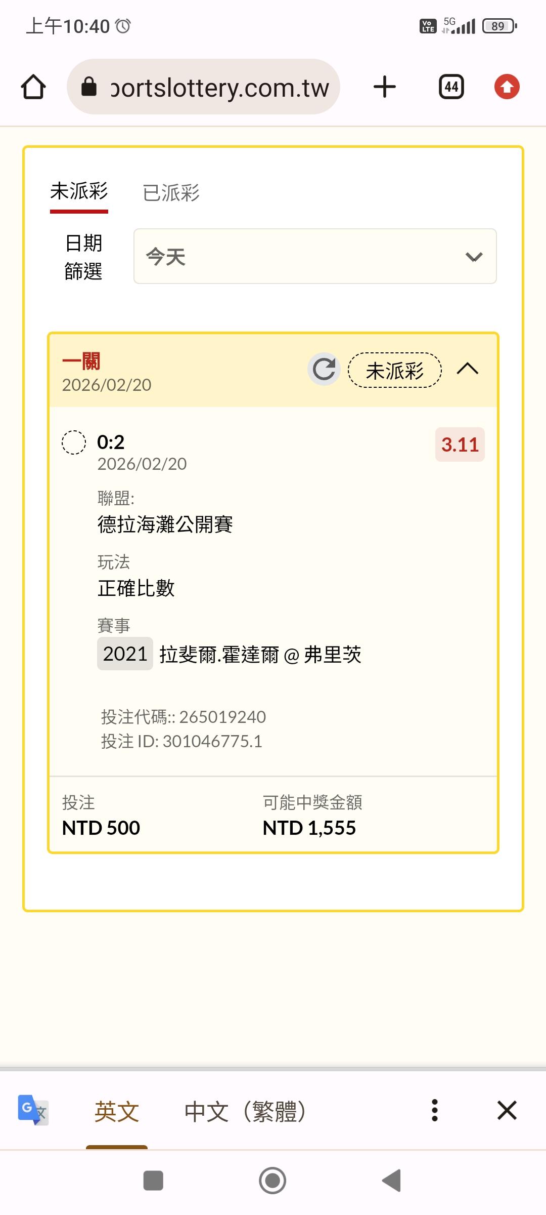 網球 >> 場中佛里莰-3.5加油