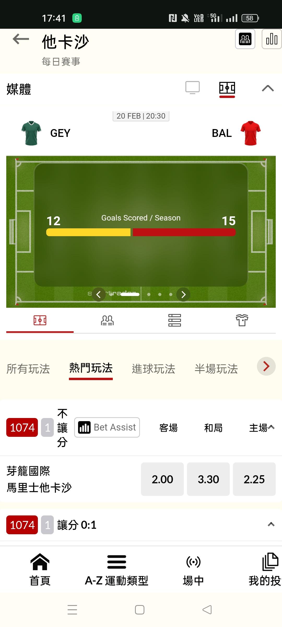 >> 更正20:30新加坡 芽籠國際vs馬里士他卡沙