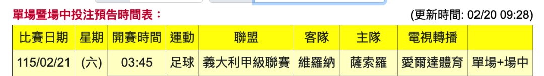 足球 >> ⚽️邪惡的氣息,運彩單場:意甲 薩斯索羅:維羅納