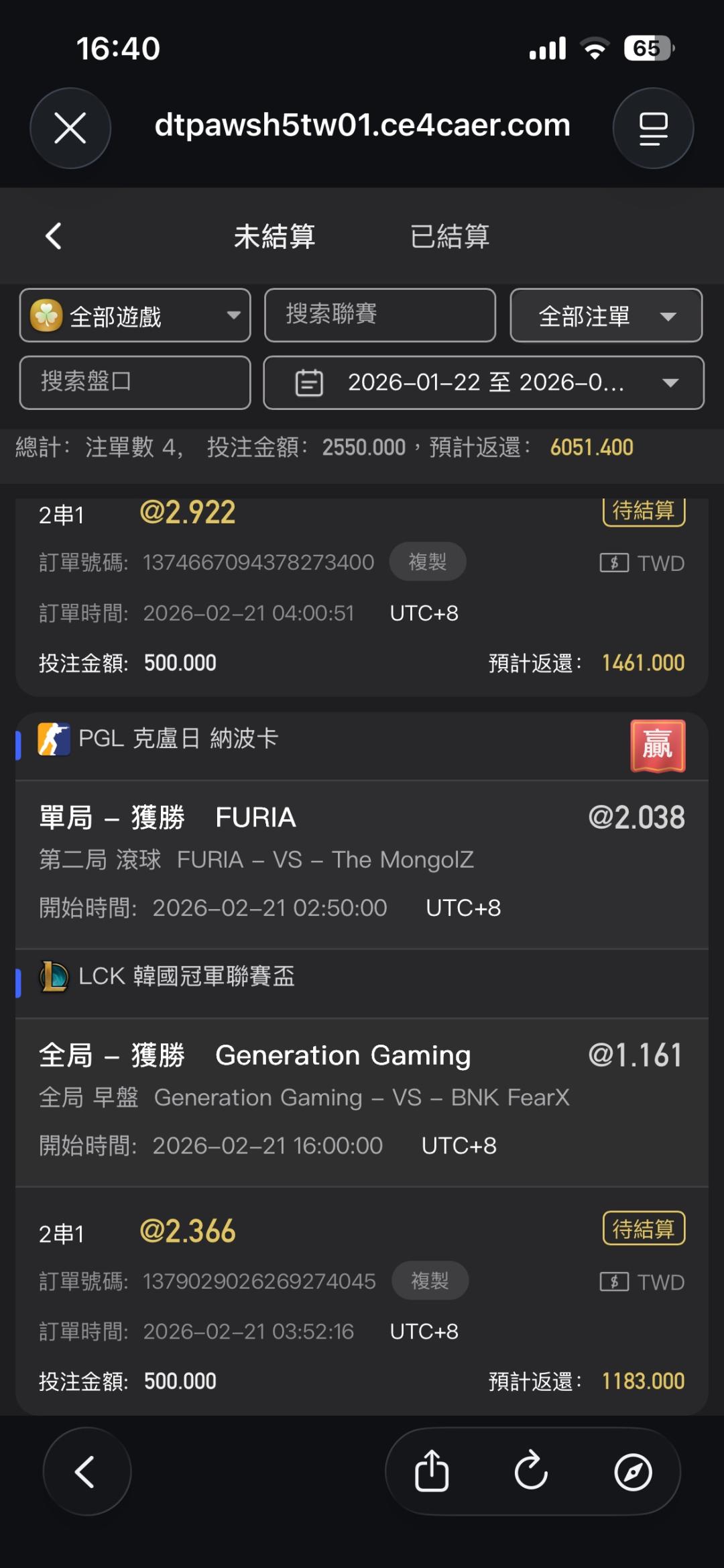 電競 >> 自我紀錄(2/21+2/22兩單串)(不喜勿入)