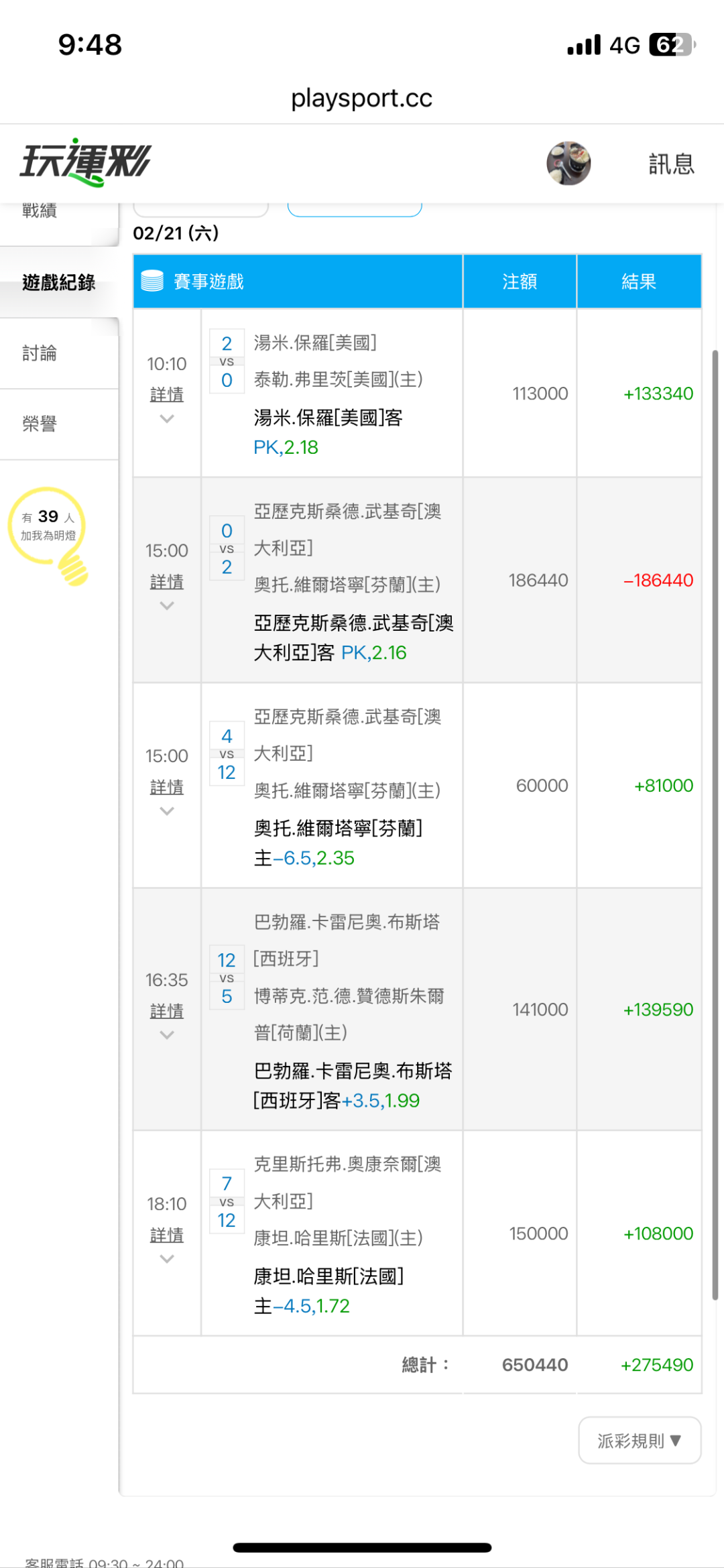 網球 >> 2/21〈網球〉ATP、WTA-各種公開賽