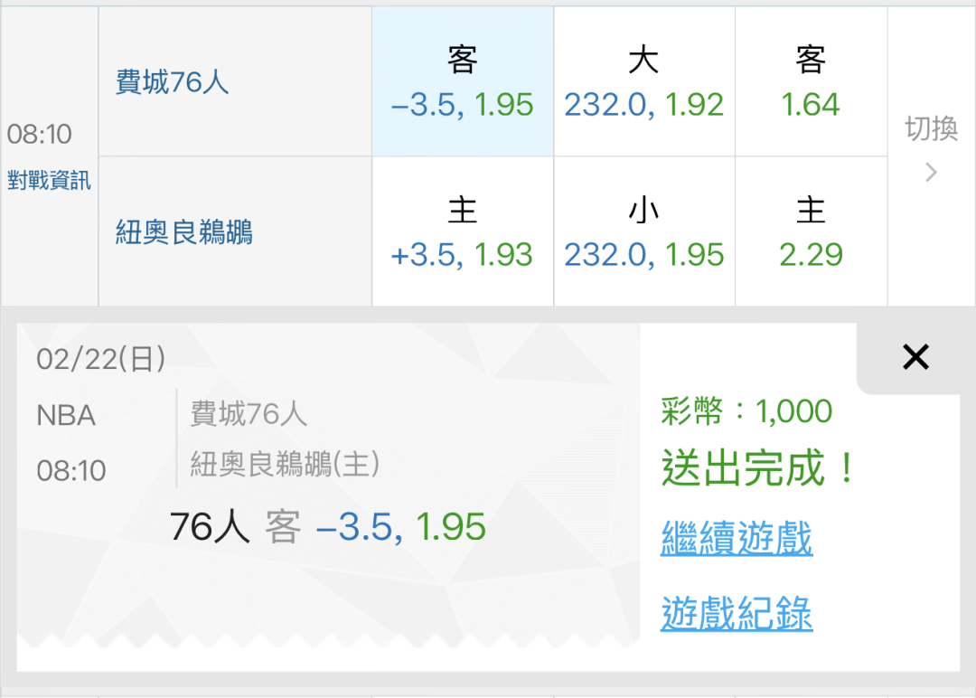 | 運彩盤賽事 |