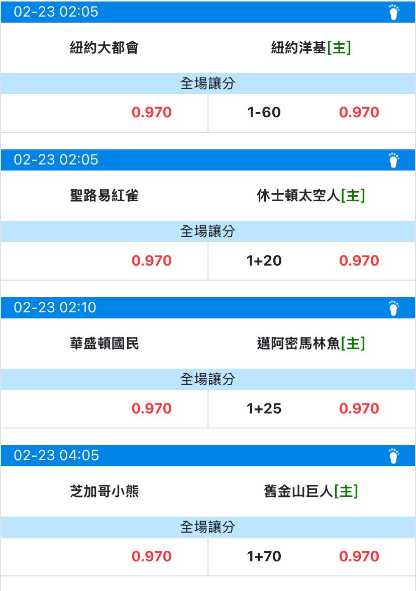 >> 2/23 美棒熱身賽初盤(預祝過盤)