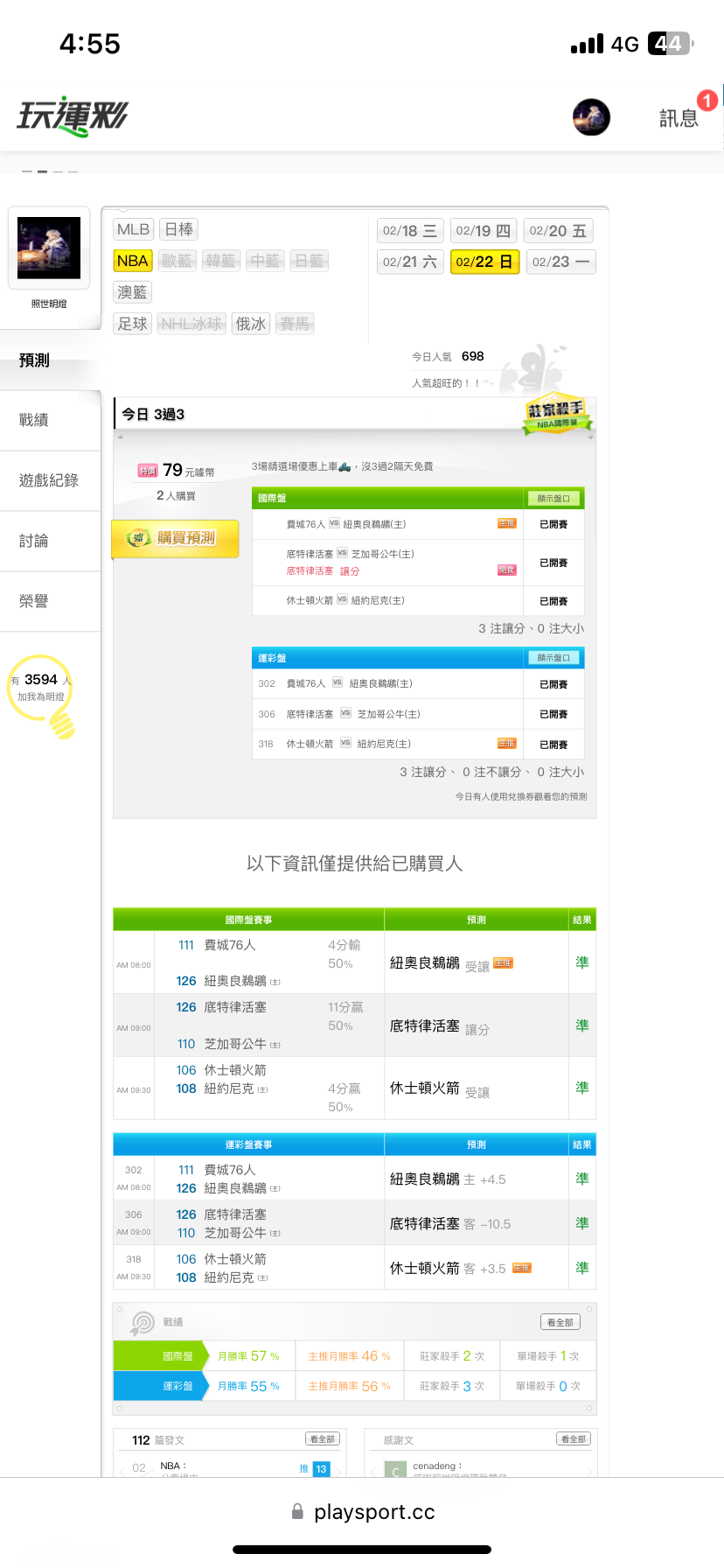 >> NBA分享(今天3過3,明天精選3場,沒3過2隔天免費)