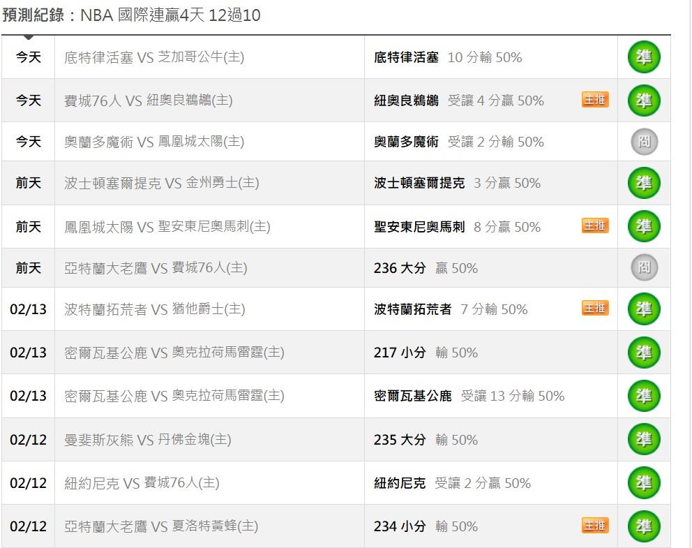 NBA >> 2/23日NBA1場參考(國際 連贏4天 12過10)