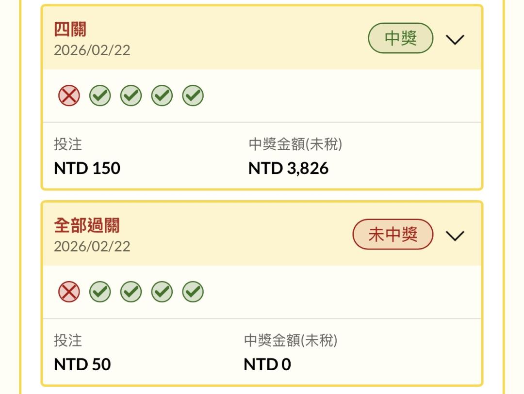 各位大大,想請問我過巨人、大都會、守護者、道奇4關 算法該怎麼算,我去運彩領錢,才領到4百多塊🥲🥲🥲