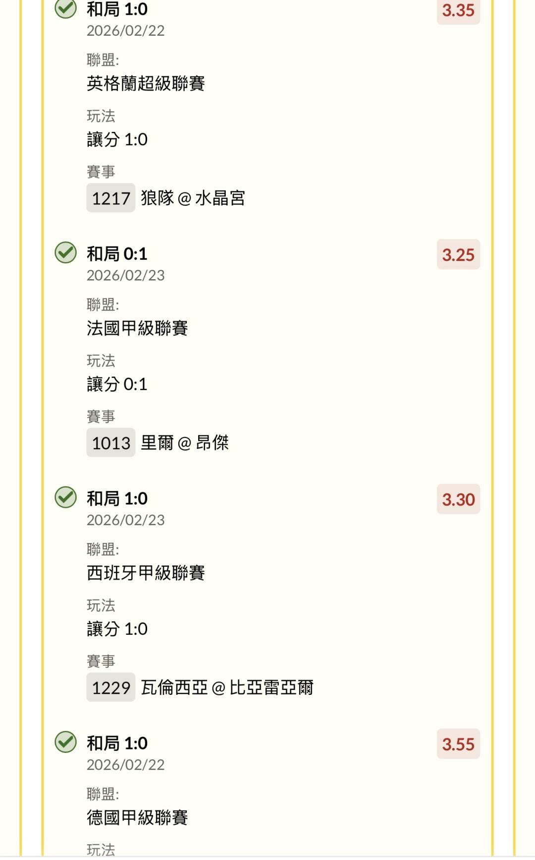 五大聯賽足球正比、讓和