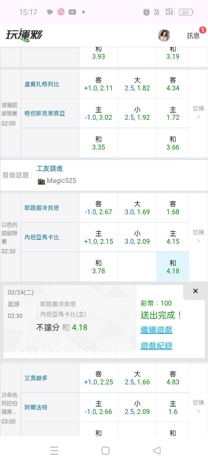 足球 >> 又贏錢了,正比波膽連續命中二天贏11倍,11倍,明天1:45歐冠殺🤩