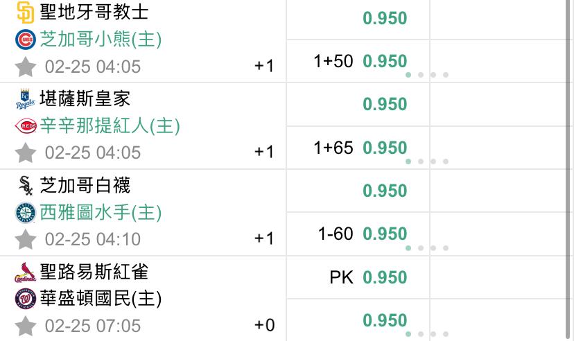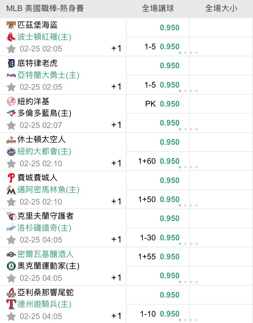 >> 2/25 美棒初盤熱身賽(預祝過盤)