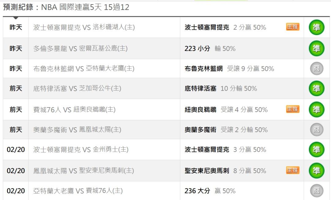 NBA >> 2/25日NBA1場參考(國際 連贏5天 15過12)