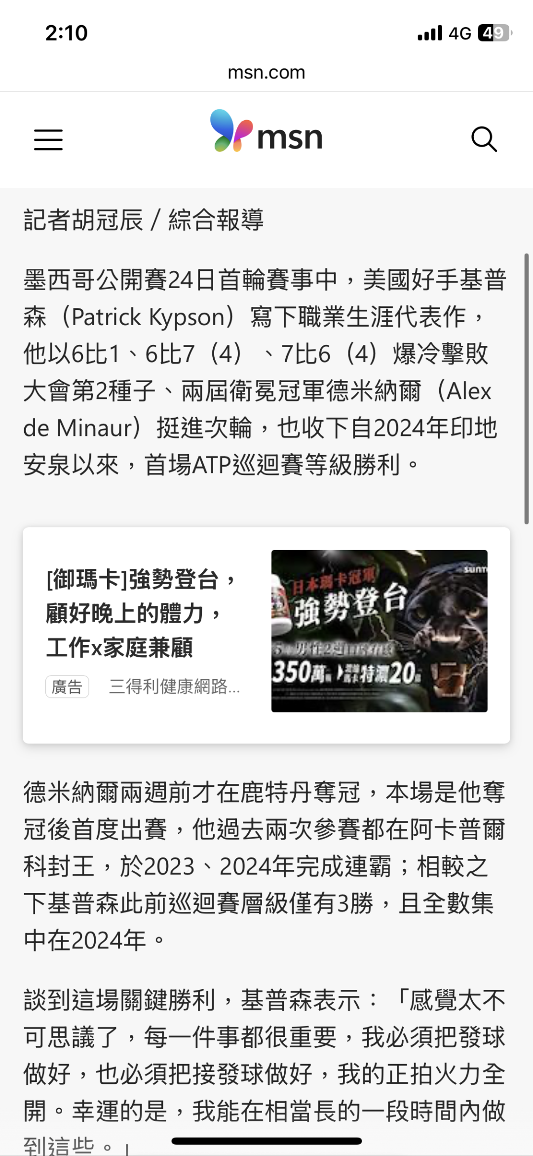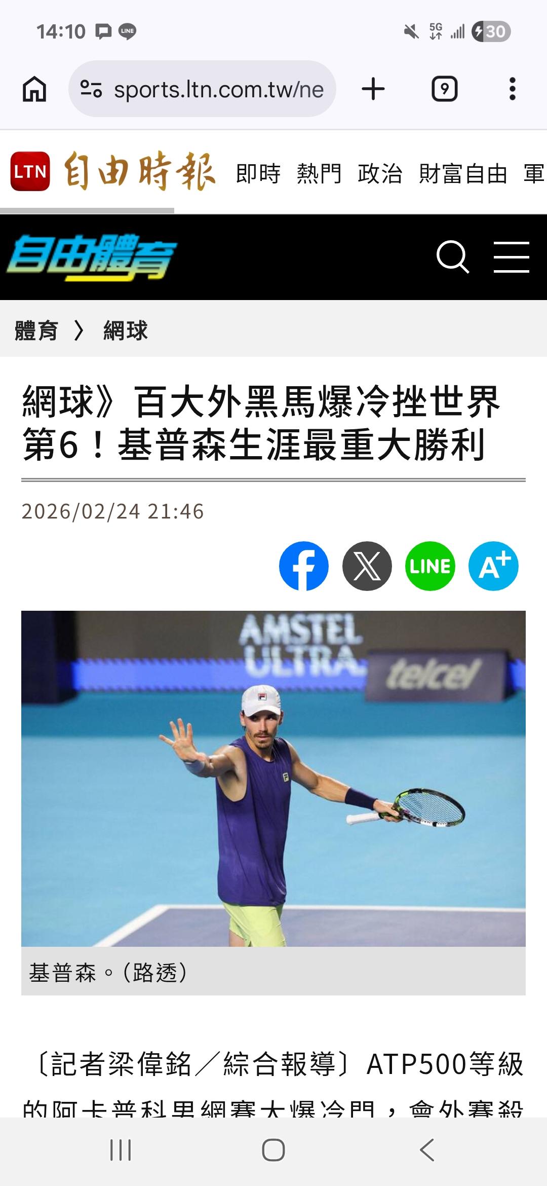 網球 >> 2/25〈網球〉ATP、WTA-各種公開賽