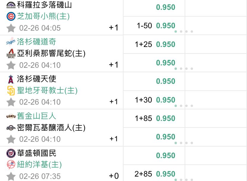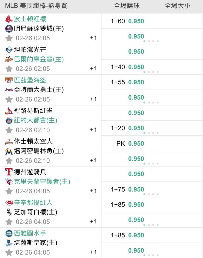 MLB >> 2/26 美棒初盤熱身賽(預祝過盤)