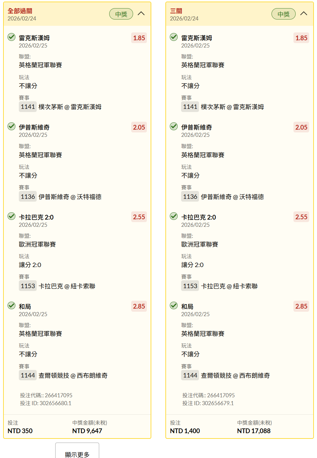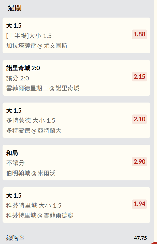 足球 >> 【MOFU足球預測】串關過 (炫耀文)