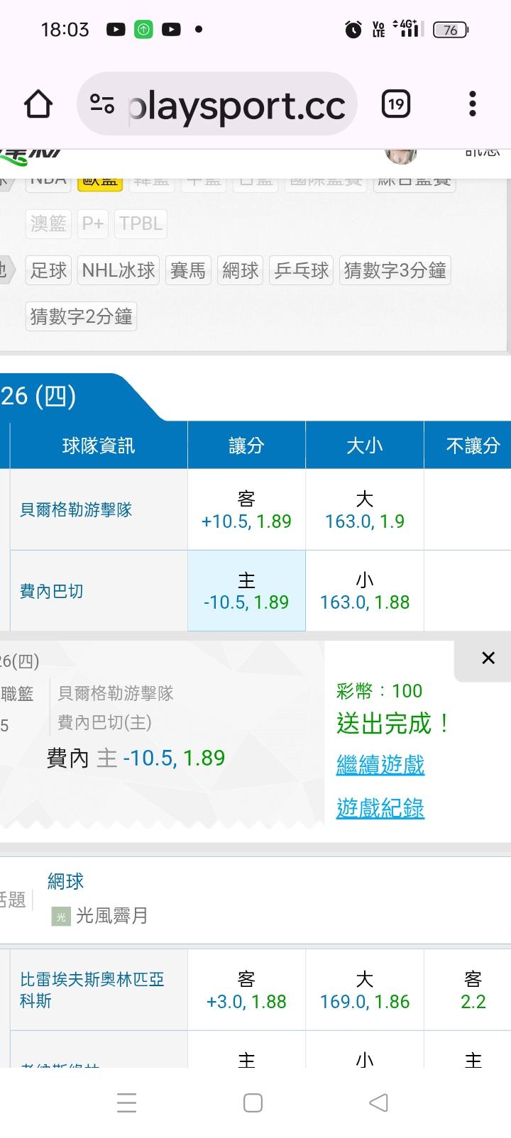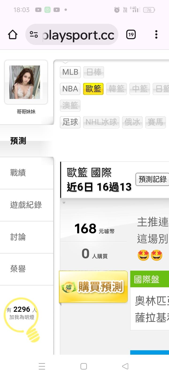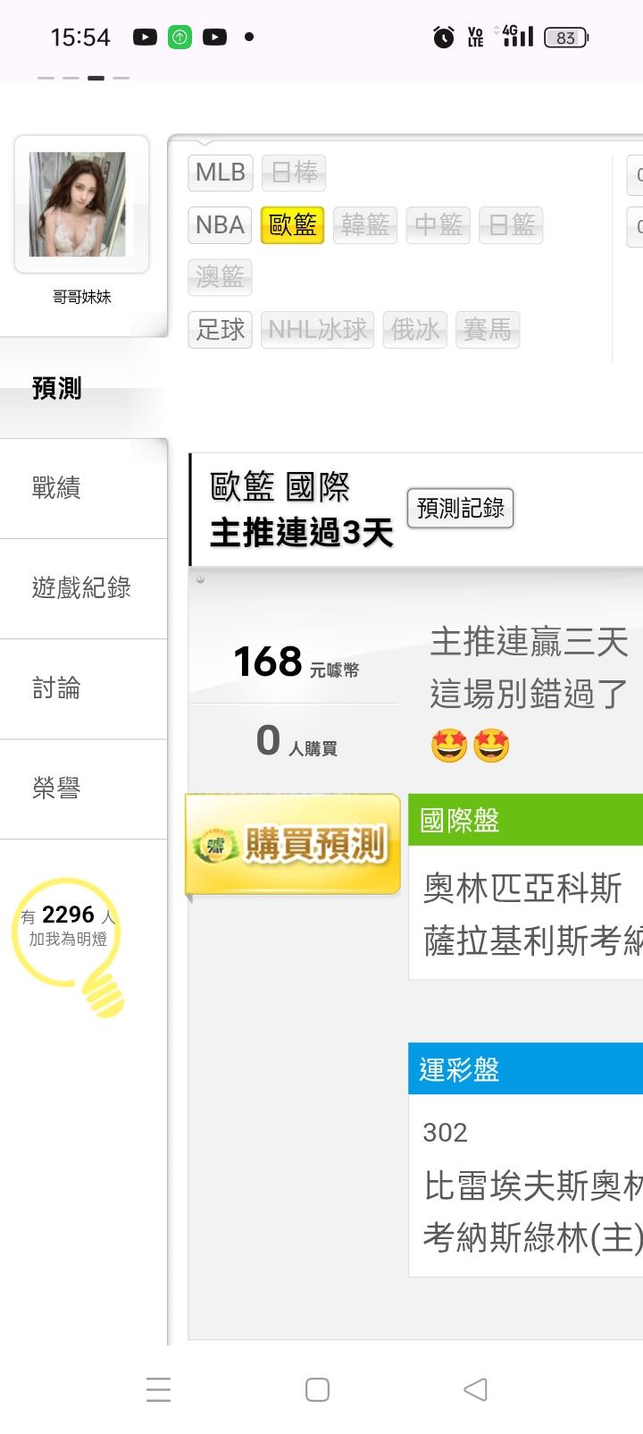 歐洲職籃 >> 主推連贏三天,近六天16場贏13場,半夜2:00(奧林v綠林)🤩