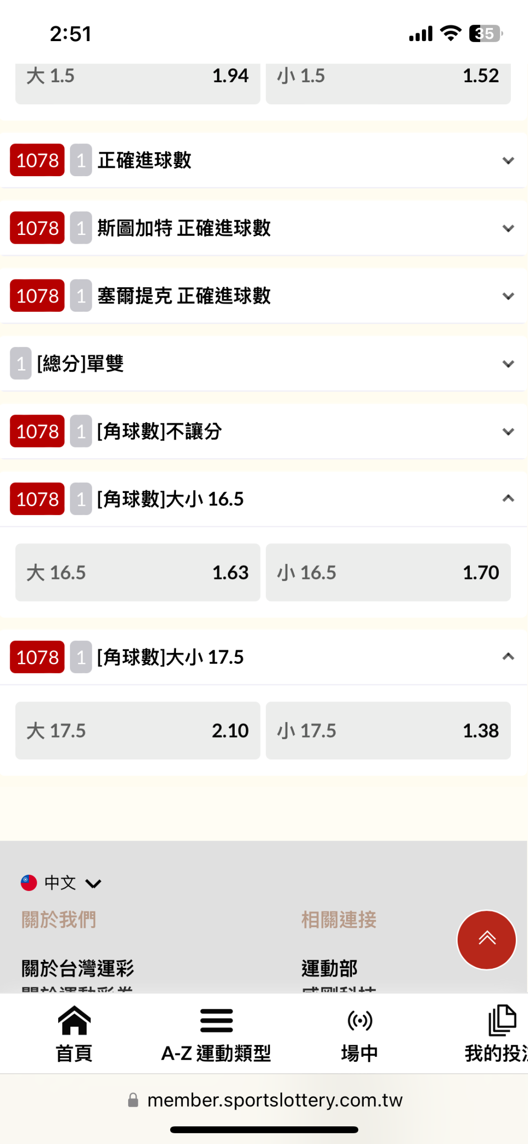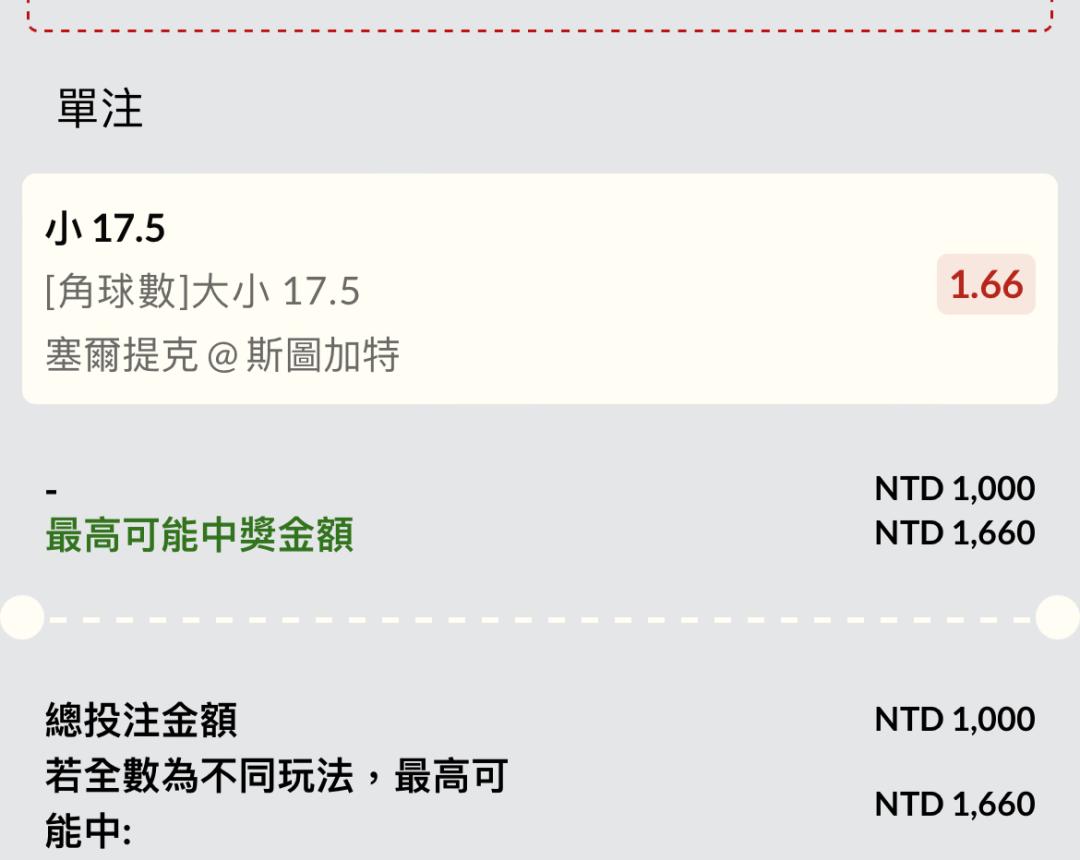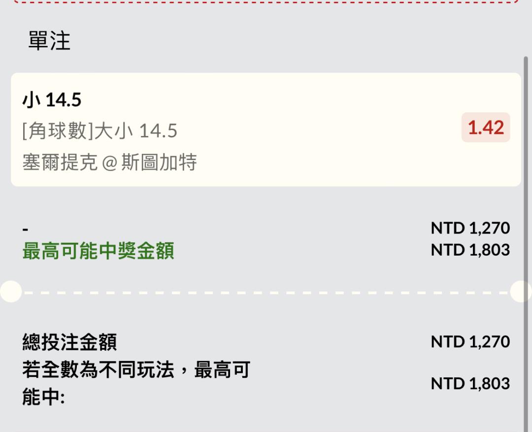 賽前看小球跟小角還好買小球沒買角 夭壽大角